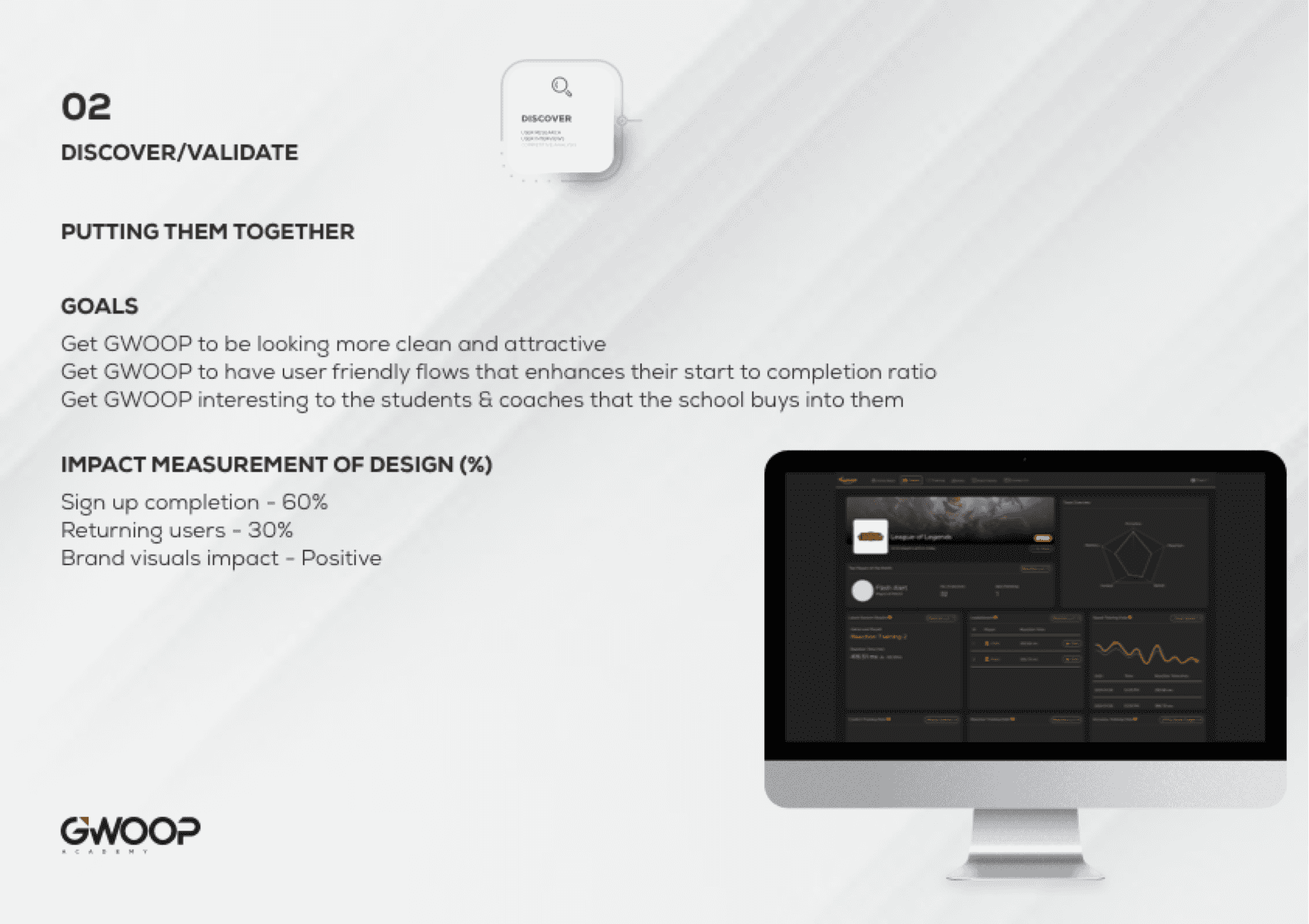 Impact measurement of design (%) Sign up Completion % jumped from 27% to 51% Dropoffs were reduced from 72% to 43% Returning users Users who came back jumped from 7% to 12% Brand visuals impact - Positive